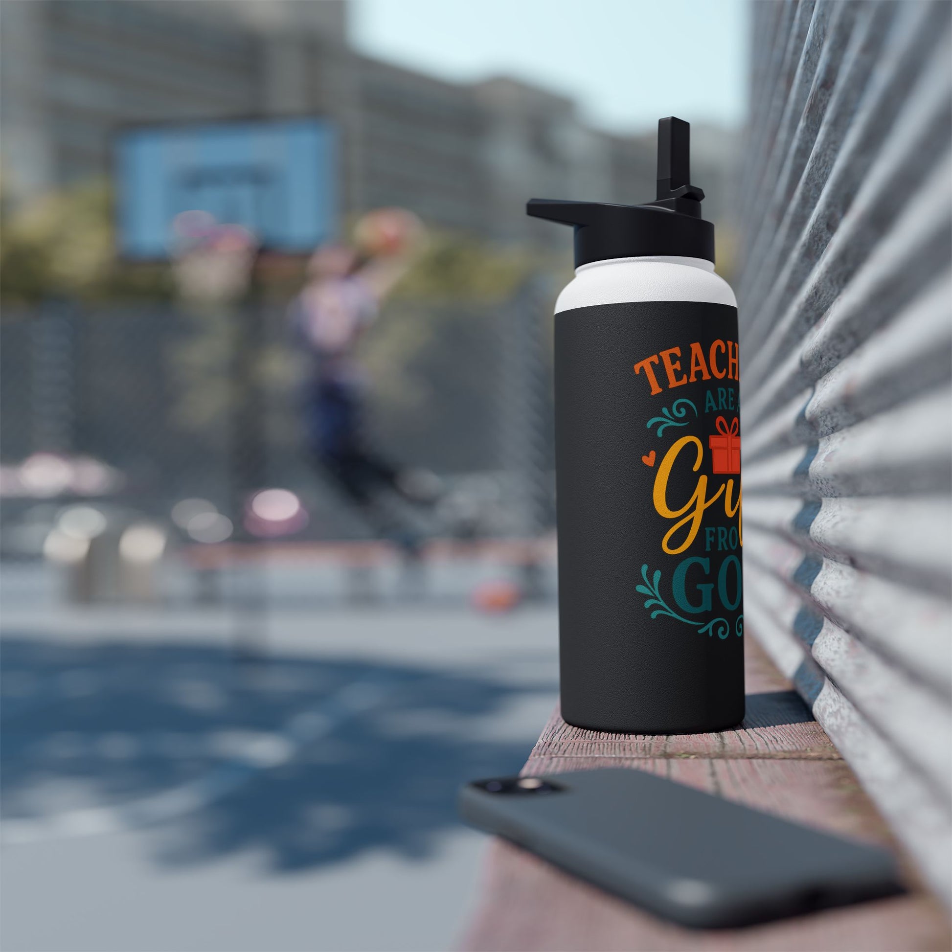 This stainless steel water bottle carries a warm, grateful message—bold lettering and cheerful colors on a matte, grainy surface that feels good in the hand. Double-wall insulation keeps hot drinks up to 12 hours and cold up to 24, making it a reliable companion during long school days, commutes, or weekend lessons. The twist-on, BPA-free lid seals securely for leak resistance and the durable stainless body stands up to daily use. Available in three sizes, it’s designed for adult use and finished with vibrant printing that stays crisp over time. Bring a little encouragement to a teacher’s routine with a practical, heartfelt item they’ll reach for again and again.
